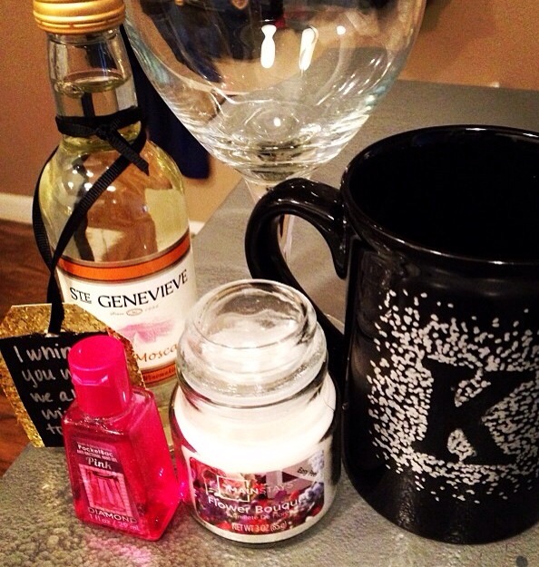 - A wine bottle with a little tag I made that said “I whine, you wine, we all wine together”