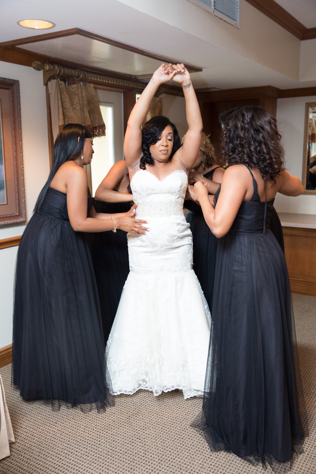 My BFF Ashlee joined me at the doctor that Wednesday, when my doctor officially confirmed that I was expecting! Finding this information out a few months before my wedding, I began to think about all the plans I had for my wedding including that beautiful custom dress that I had made almost a year prior. When I asked my doctor if it was okay to continue to “diet” because I had a wedding dress to fit into she almost bit my head off and made Ashlee swear to make sure I ate. She was definitely being overly dramatic, but I from that moment I mentally (and secretly) changed all gears from wedding mode to baby mode. On my wedding day getting into my dress wasn’t the easiest task, but I made it!